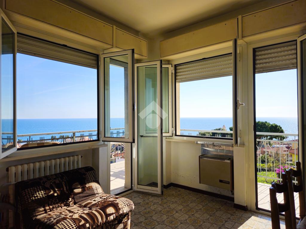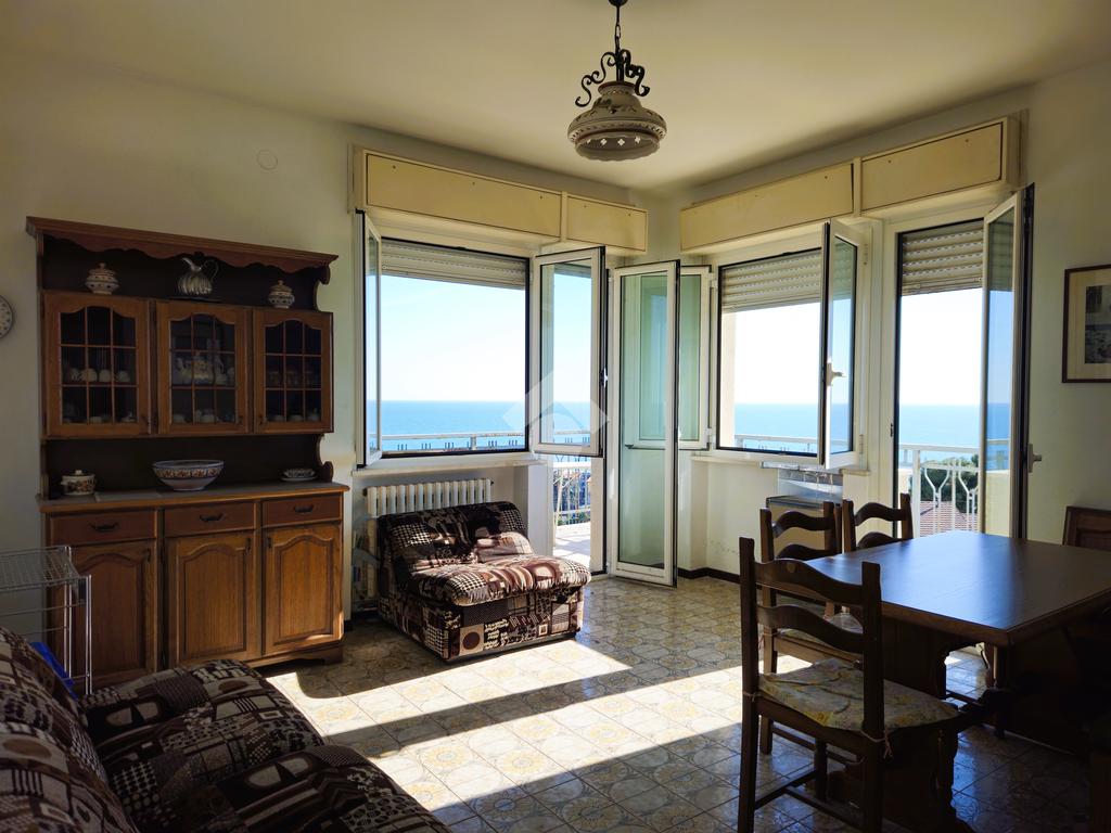 Dalla zona giorno, tramite le due porte finestre si accede al terrazzo angolare da cui si gode di una splendida vista mare e panoramica.