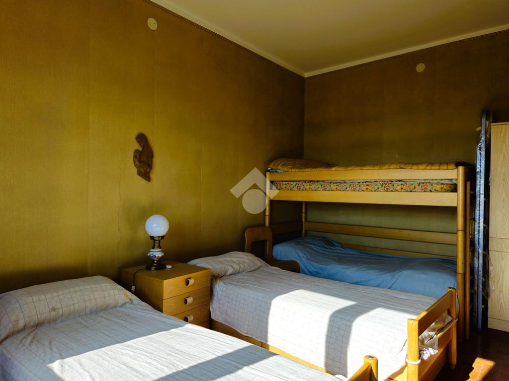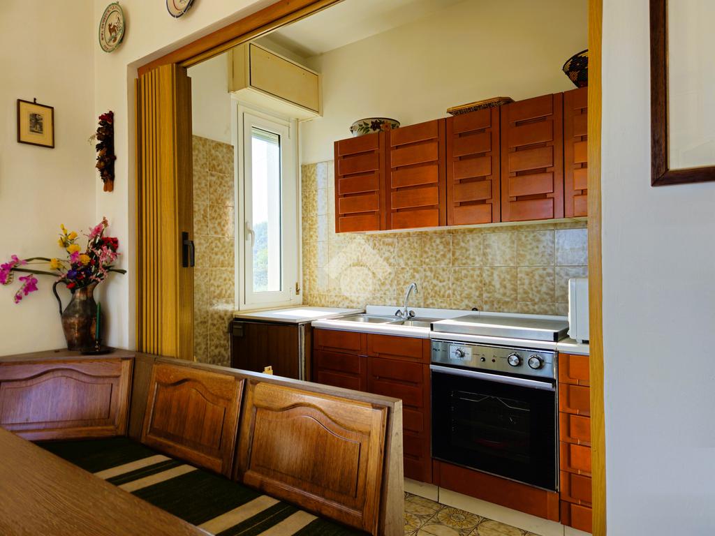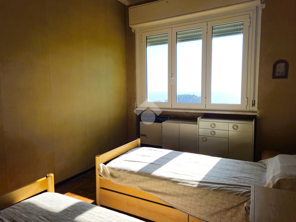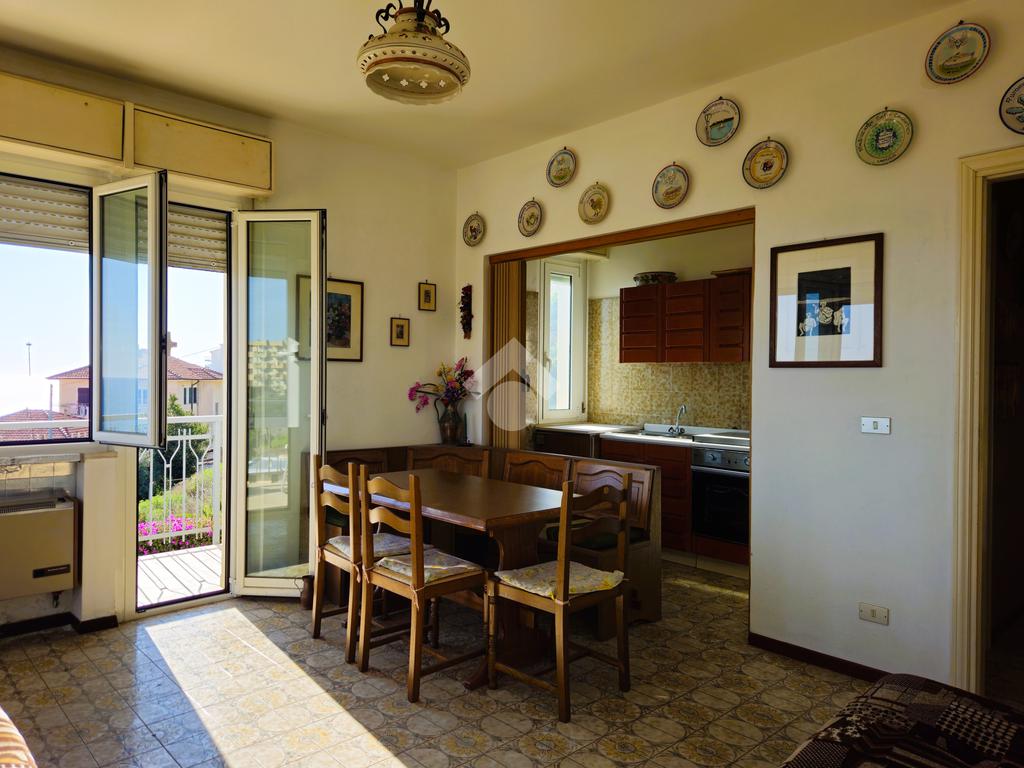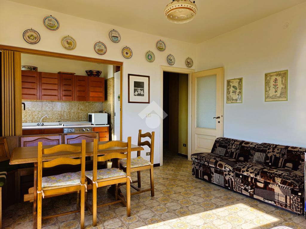 Il disimpegno di ingresso accoglie un capiente armadio a muro, dal soggiorno, grazie alle due ampie finestre rivolte a sud, si ha già un anticipazione dello splendido panorama, l'angolo cottura è finestrato, la camera matrimoniale accoglie attualmente due letti singoli e uno a castello e dall'ampia finestra si può scorgere una piacevole vista mare, il bagno finestrato è dotato di vasca.